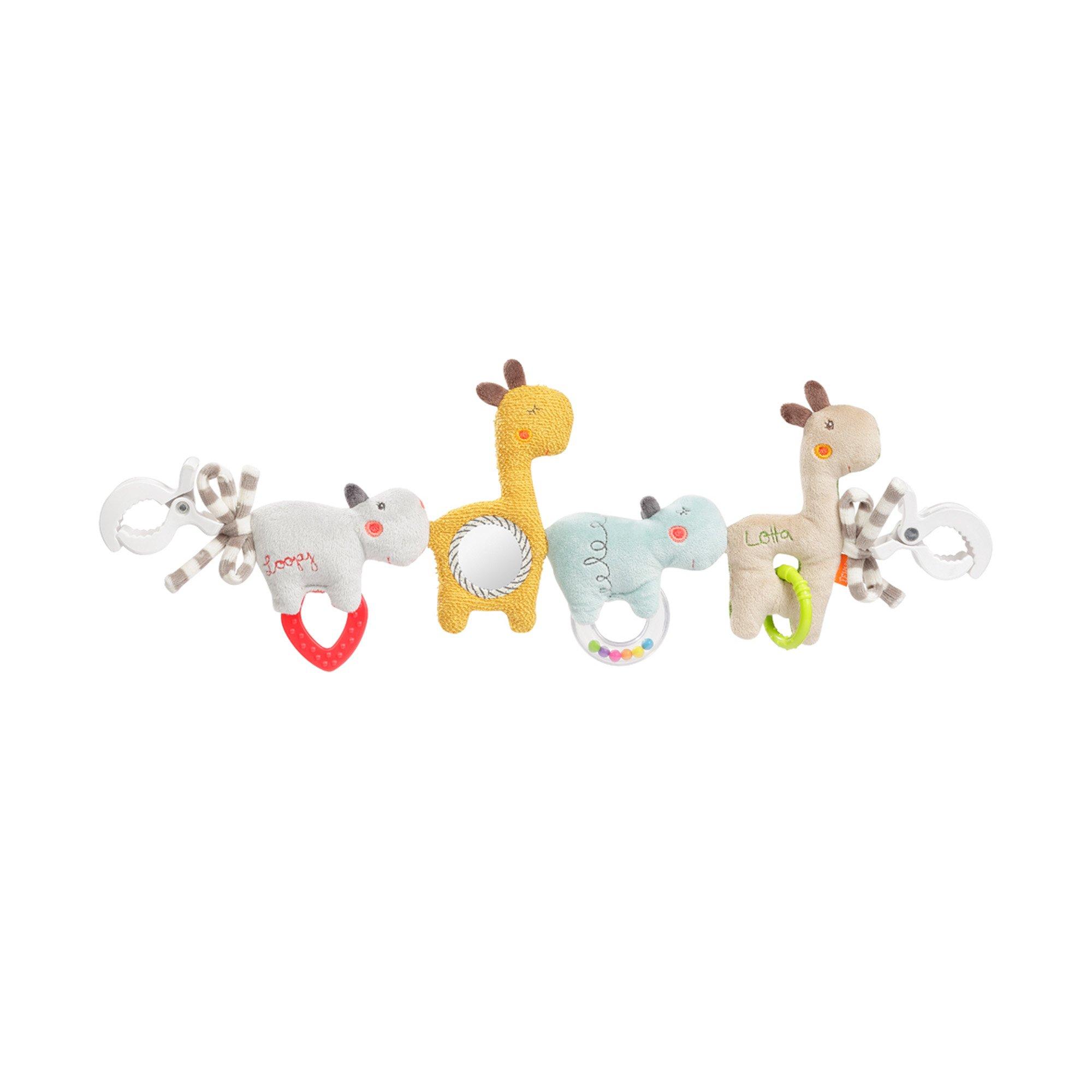 La spirale Activity con Loopy l'ippopotamo e Lotta la giraffa si può fissare facilmente al passeggino e offre uno stimolo soffice.