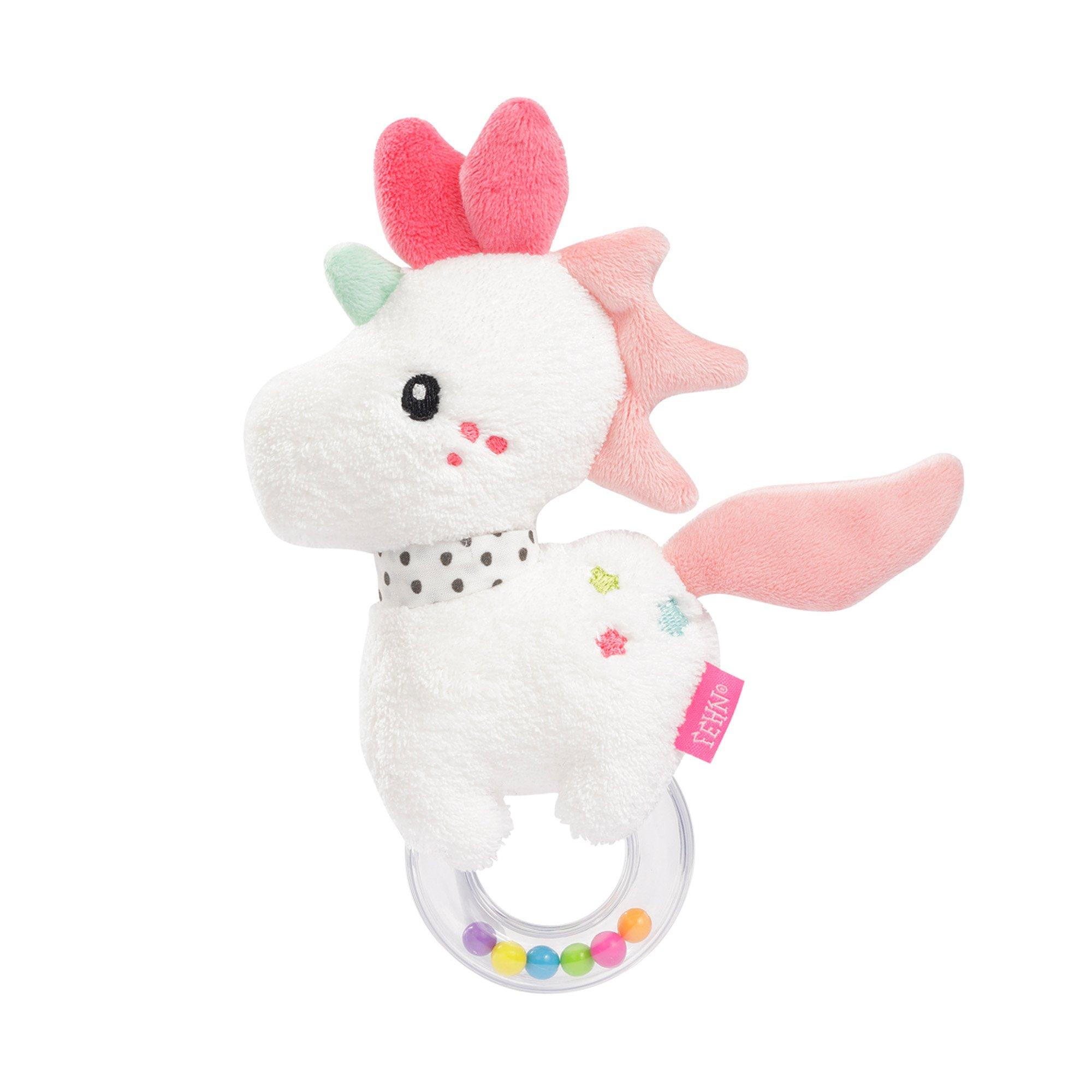Fruscii e coccole al contempo con il simpatico anello a sonagli dell'unicorno Aiko firmato Fehn.