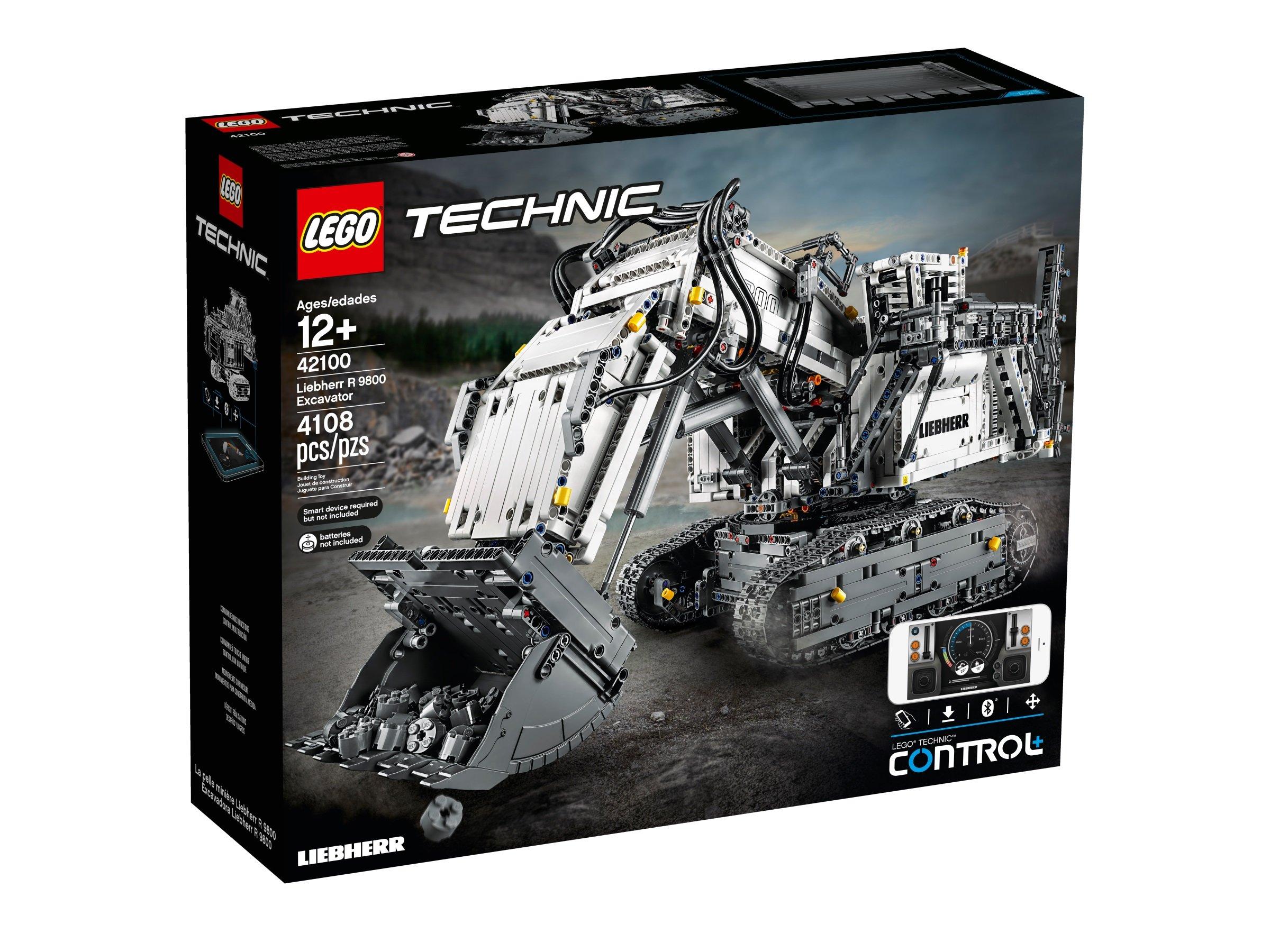 - L’Escavatore Liebherr R 9800 controllato da app LEGO® Technic è comandato tramite dispositivo smart con 4 schermate alternative.