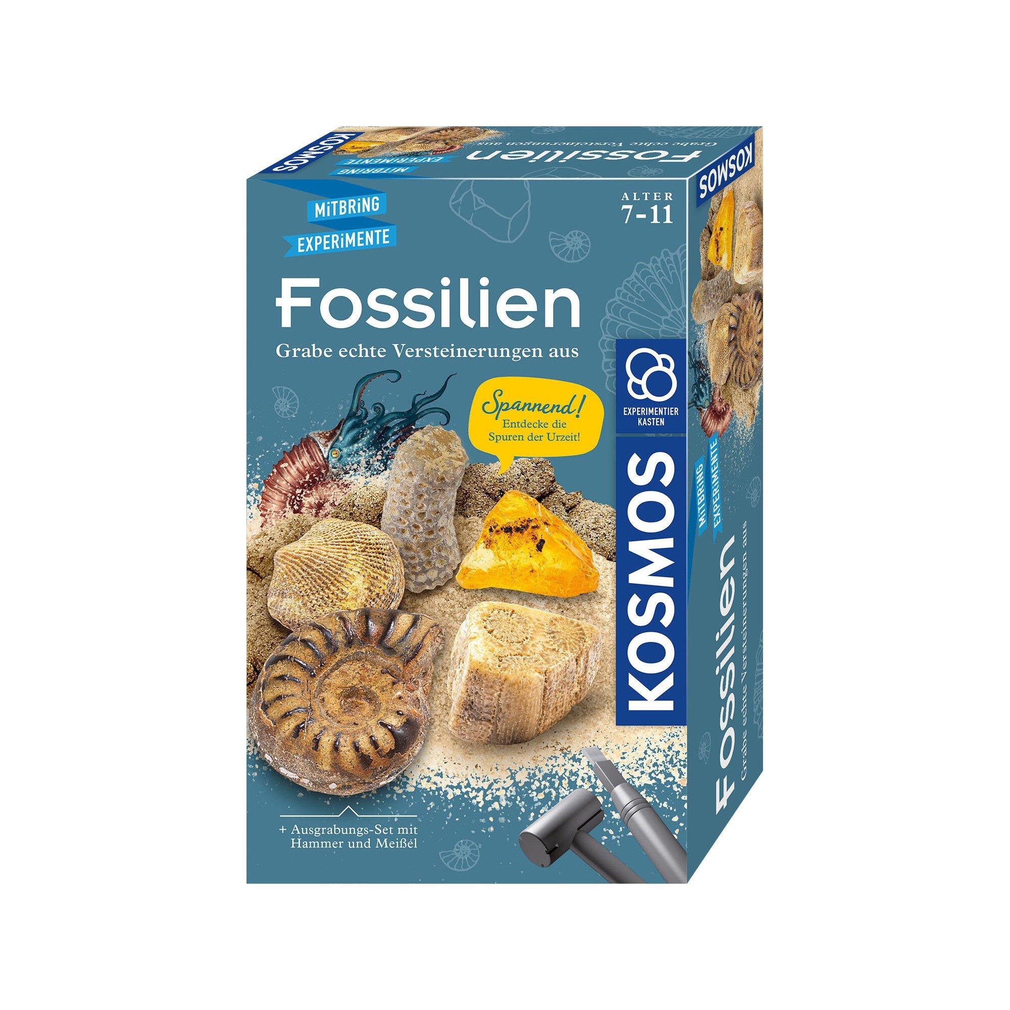 Come un vero geologo, questo set consente di scavare con uno scalpello e un martello fossili: 4 fossili di animali (dente di squalo, ammonite, coralli, lumache e conchiglie) e un'ambra (resina di alberi fossili).