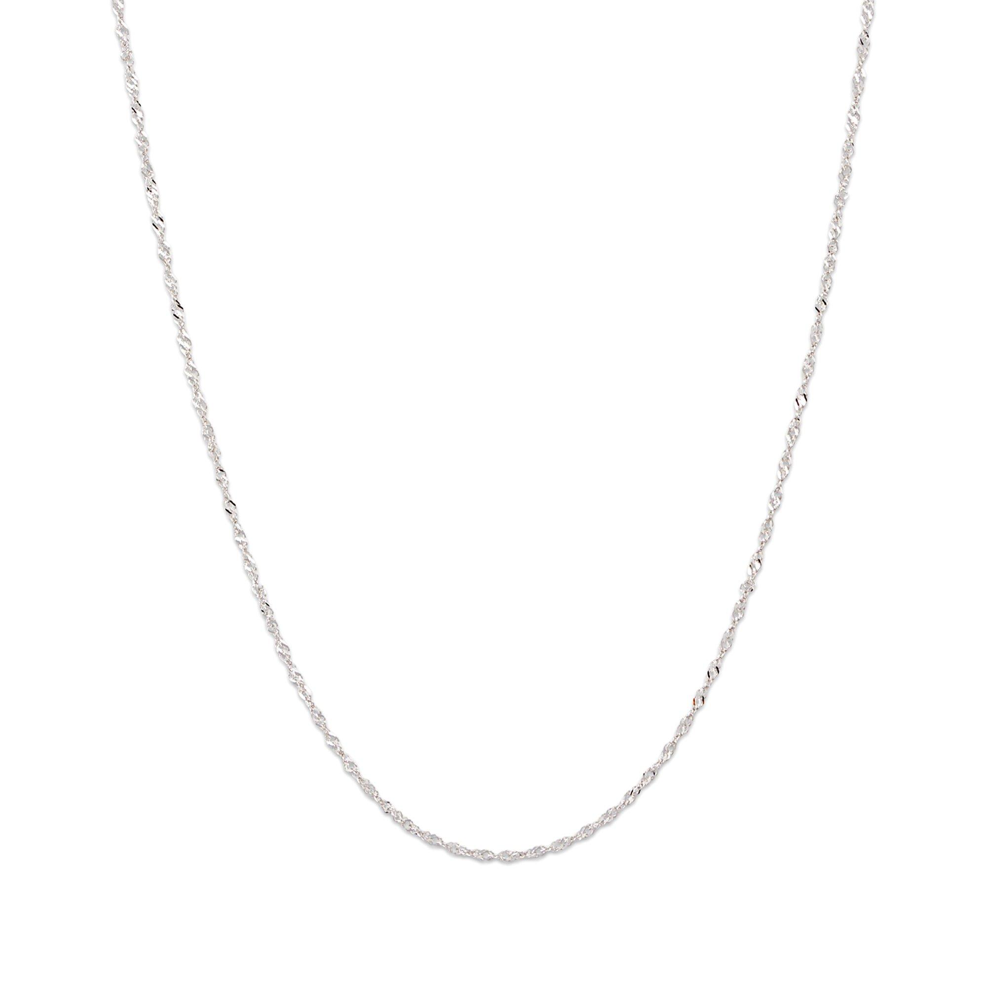 La catena Singapore – un classico: questa delicata collana di L'Atelier Gold 18 Karat by Manor è realizzata in oro bianco 18 carati, che fa brillare meravigliosamente ogni singola maglia della catena in filigrana. Con ciondolo o senza, questa collana ti darà molta soddisfazione.