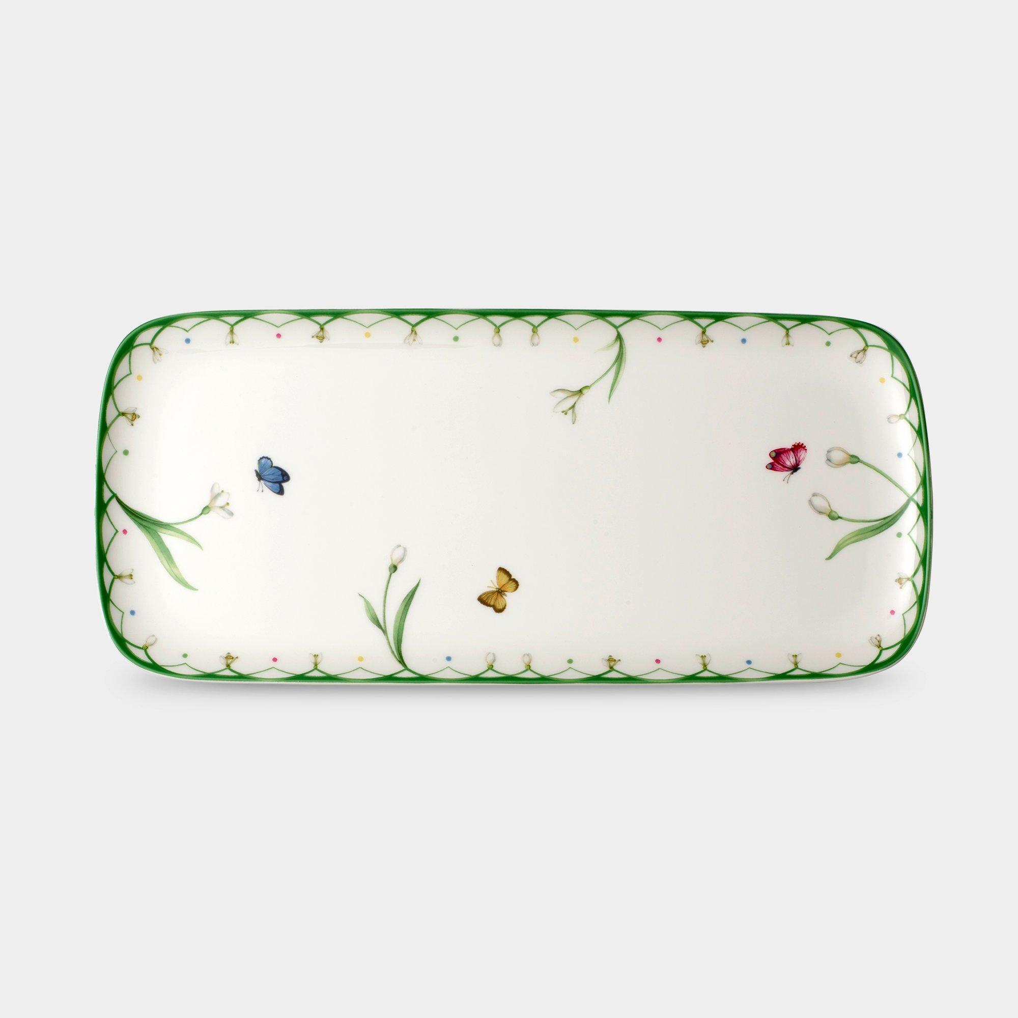 Adorabile piatto da torta firmato Villeroy & Boch. Questo piatto rettangolare per torta si distingue per i delicati motivi dei bucaneve e vivacizza qualsiasi tavolino da caffè.