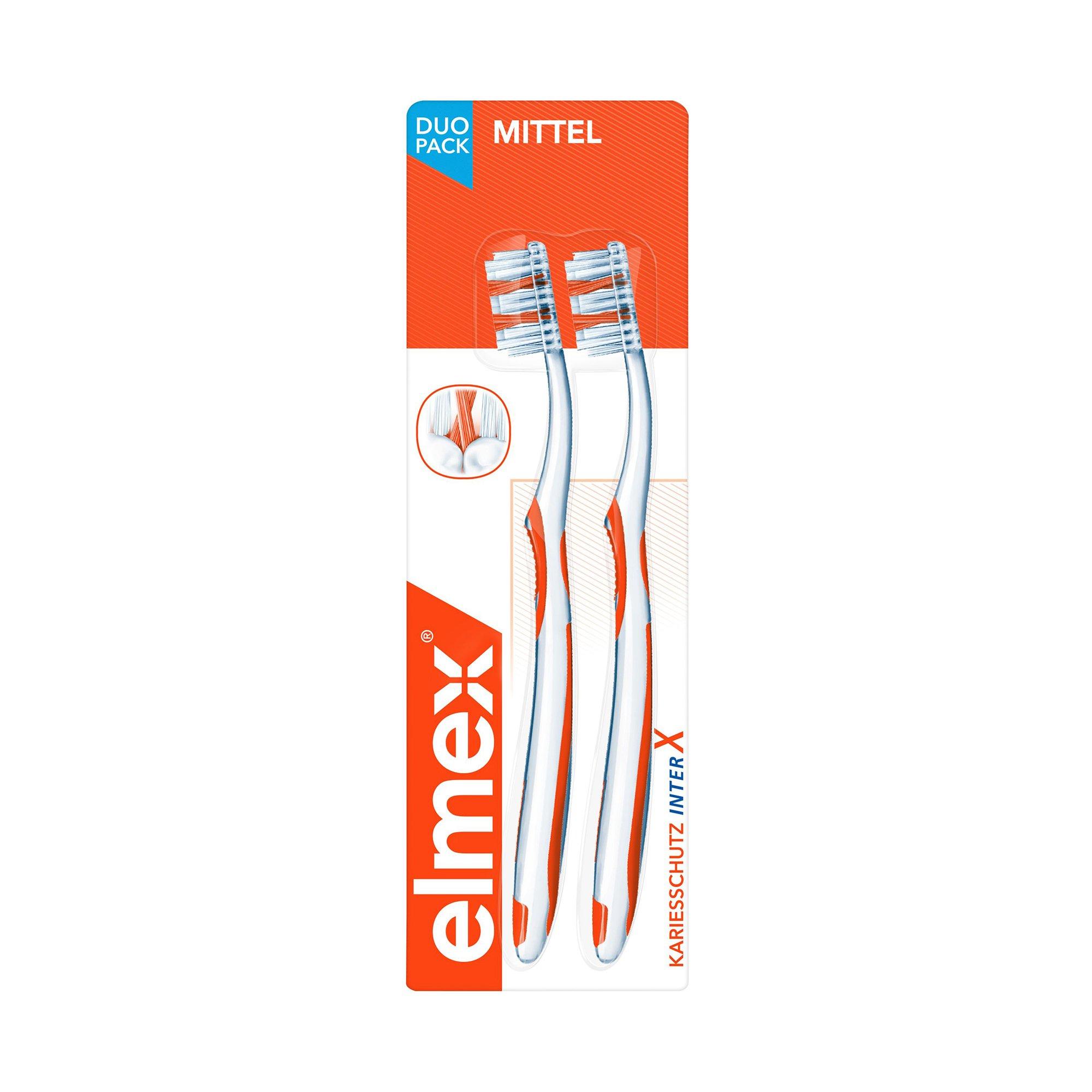 elmex, INTERX MITTEL, Interx Medio Spazzolino, Con Setole A Forma Di X Per Una Pulizia Profonda, Duo
