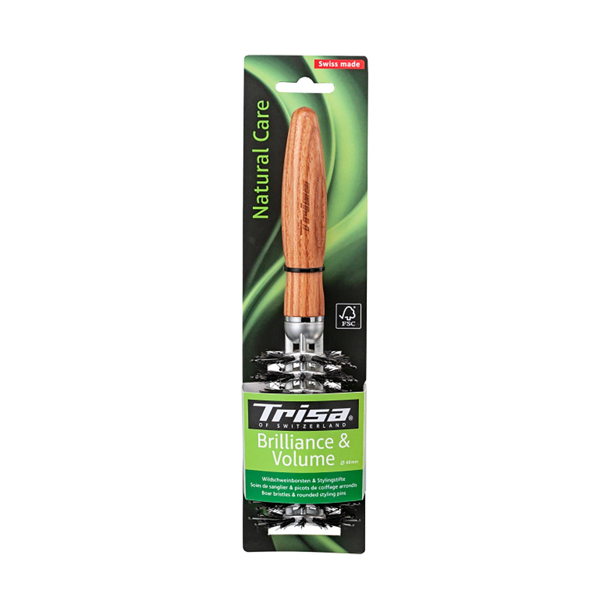 Spazzola di qualità esclusiva con impugnatura ergonomica in legno svizzero (FSC). Perfetta per pettinare e realizzare le acconciature più di tendenza.