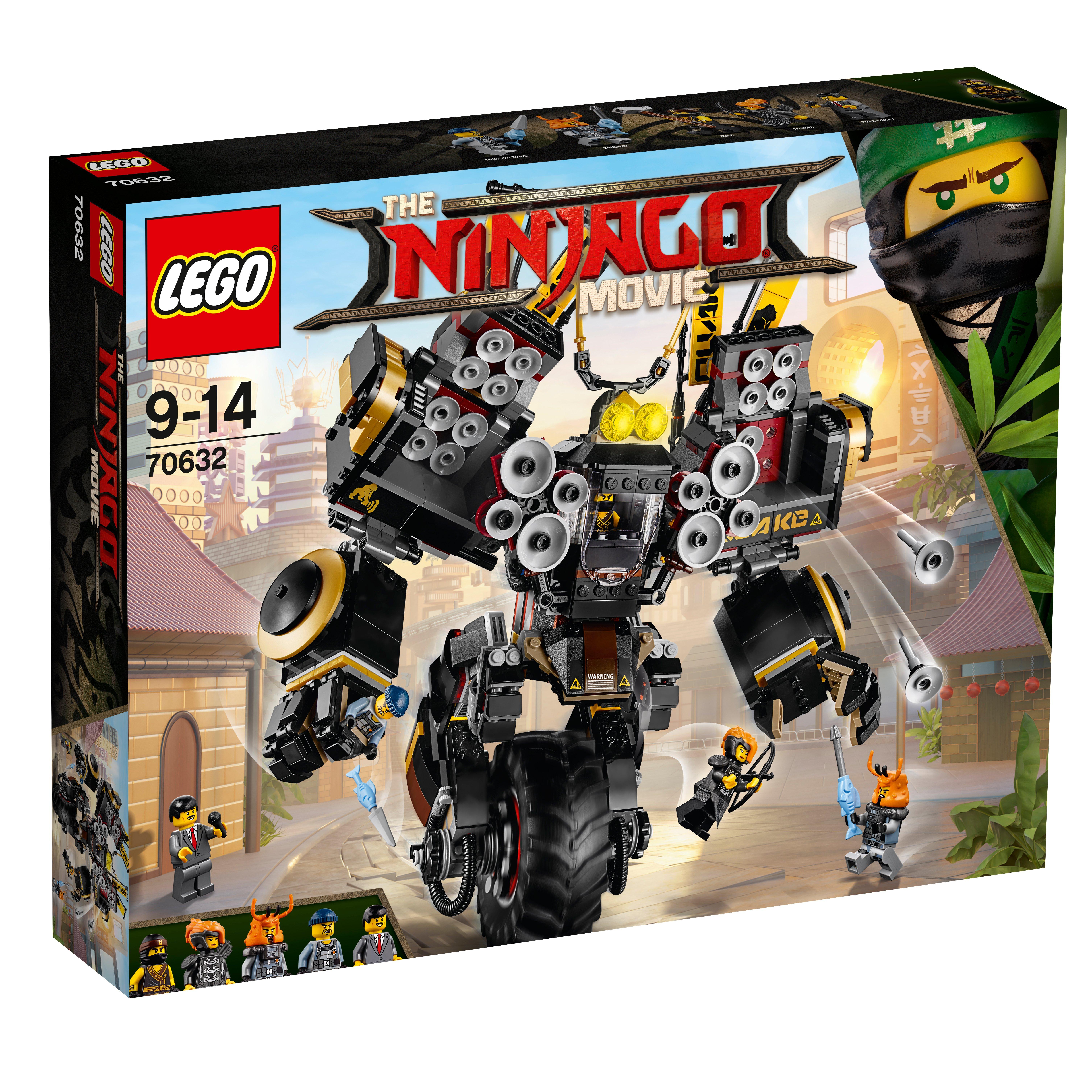 Spara “onde sonore” dal Robot tellurico di Cole per salvare il reporter TV Fred Finley dall’esercito degli squali, con questo set ricco di azione di THE LEGO® NINJAGO® MOVIE™. Il Robot tellurico, monoruota e altamente snodabile, è dotato di cabina di guida per minifigure apribile, altoparlanti retrattili a spalla con 8 missili spara-onde sonore nascosti, braccia completamente snodabili con pugni artiglianti e una grande ruota con stabilizzatore. Questo fantastico giocattolo per bambini include anche 5 minifigure con armi assortite per intensificare le battaglie.