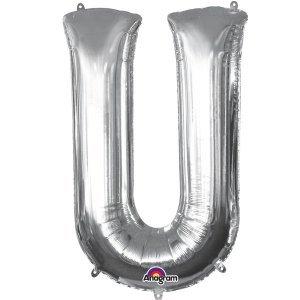 Palloncino in alluminio argento lettera "U". Dimensione: 93cm. Il palloncino ideale per un compleanno o un anniversario. Un palloncino in alluminio resistente con valvola automatica a chiusura automatica. Il palloncino ha una valvola di brevetto integrata e può essere gonfiato più volte.