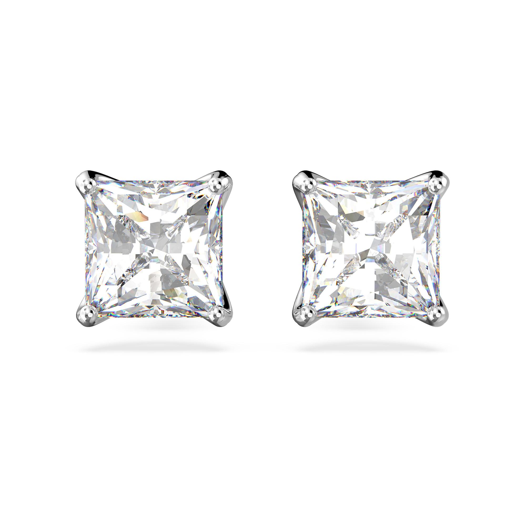 Una collezione di gioielli non sarebbe completa senza gli orecchini stud dal classico taglio Princess. Impreziosito da Clear Crystal e placcato rodio, questo meraviglioso paio di orecchini vanta un’eleganza naturale. Un ricordo senza tempo, che evoca un’estetica unisex ultra moderna. Non ti stancherai mai di indossarli.