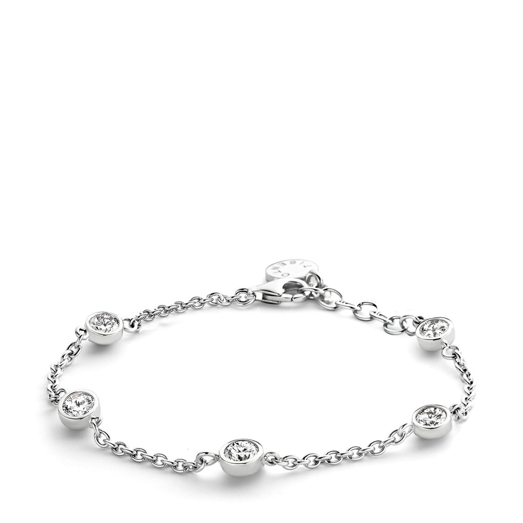 Questo elegante bracciale a catena firmato TI SENTO - Milano è realizzato con una serie di maglie ovali in argento sterling rodiato, che dona una lucentezza particolare e una finitura scintillante. Questo braccialetto sfoggia bellissimi zirconi, ognuno dei quali è incorniciato da una montatura, con strutture e colori cangianti che donano un carattere speciale. Questo braccialetto propone una lunghezza semplice di 17 cm, ma può essere allungato a 22 cm.
