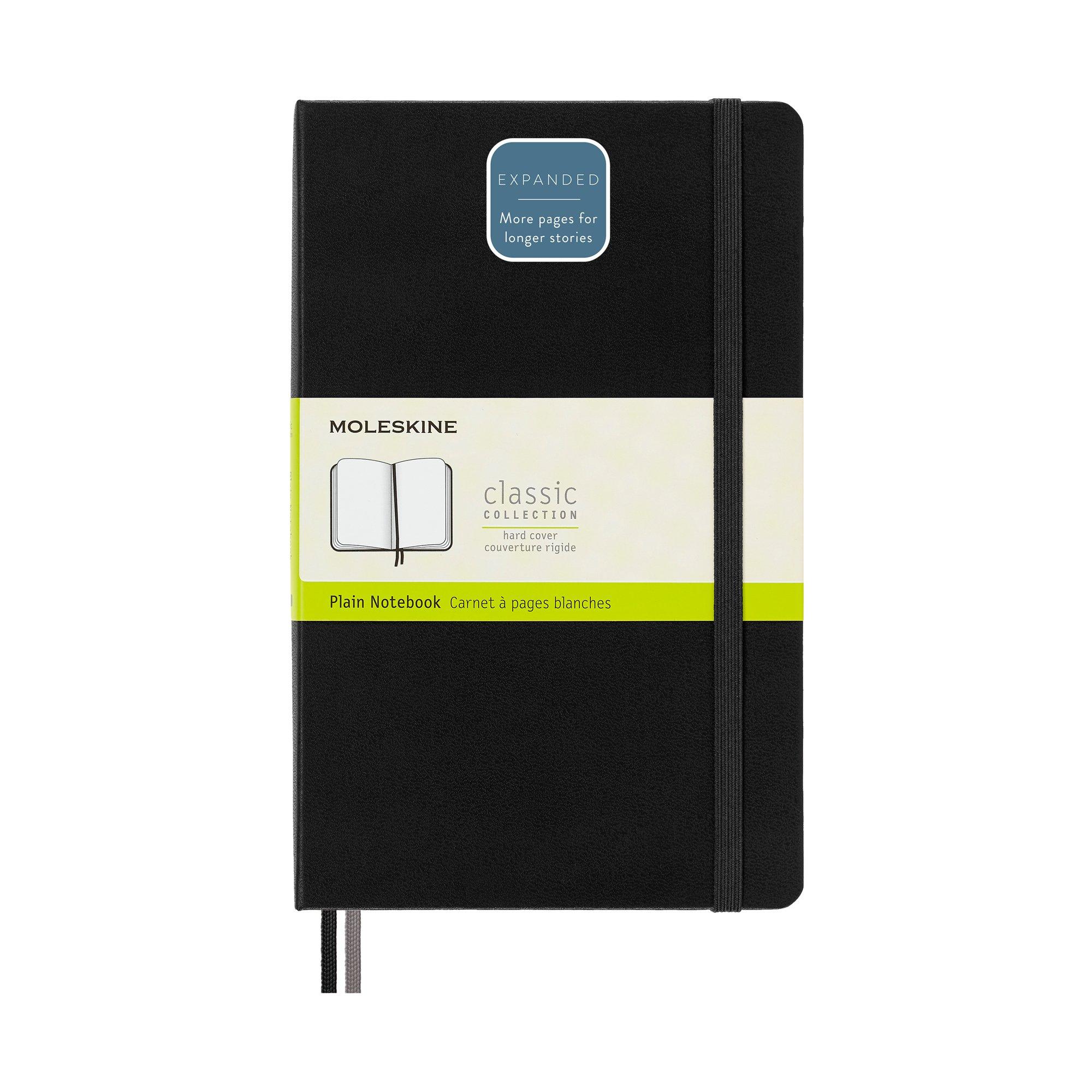 Il taccuino Classic espanso presenta gli iconici elementi di design di Moleskine, tra cui angoli arrotondati, una tasca interna espandibile per gli appunti sparsi raccolti on the road, una chiusura elastica coordinata per proteggere le tue idee e la caratteristica nota "In case of loss", in cui registrare i tuoi dettagli di contatto e una ricompensa per chiunque trovi i tuoi preziosi appunti.