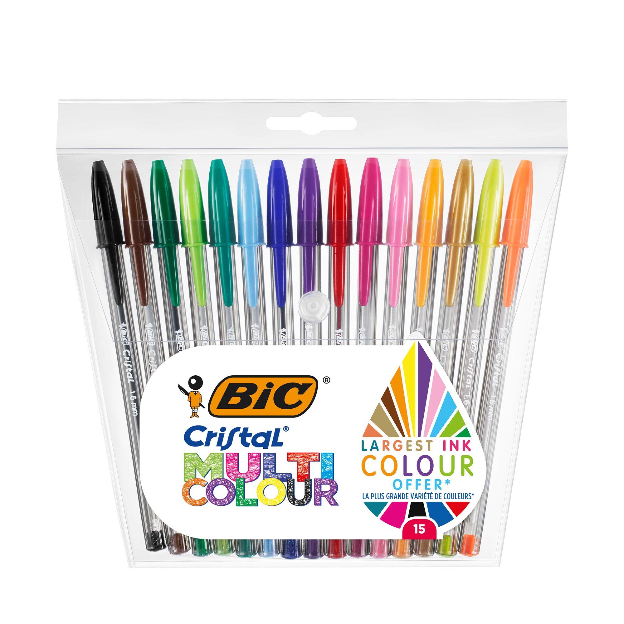 Questa confezione contiene 15 penne BIC Cristal Multicolour in un assortimento di 13 colori classici e vivaci, compresi 2 colori fluo. Un mix colorato e super moderno per ravvivare il tuo block-notes. Ottieni un effetto più spesso e intenso con la punta larga da 1,6 mm. La scrittura non è mai stata così vivace e colorata. Prendi appunti in modo facile e veloce con queste penne con la sfera perfettamente tonda per un flusso di inchiostro ottimale.