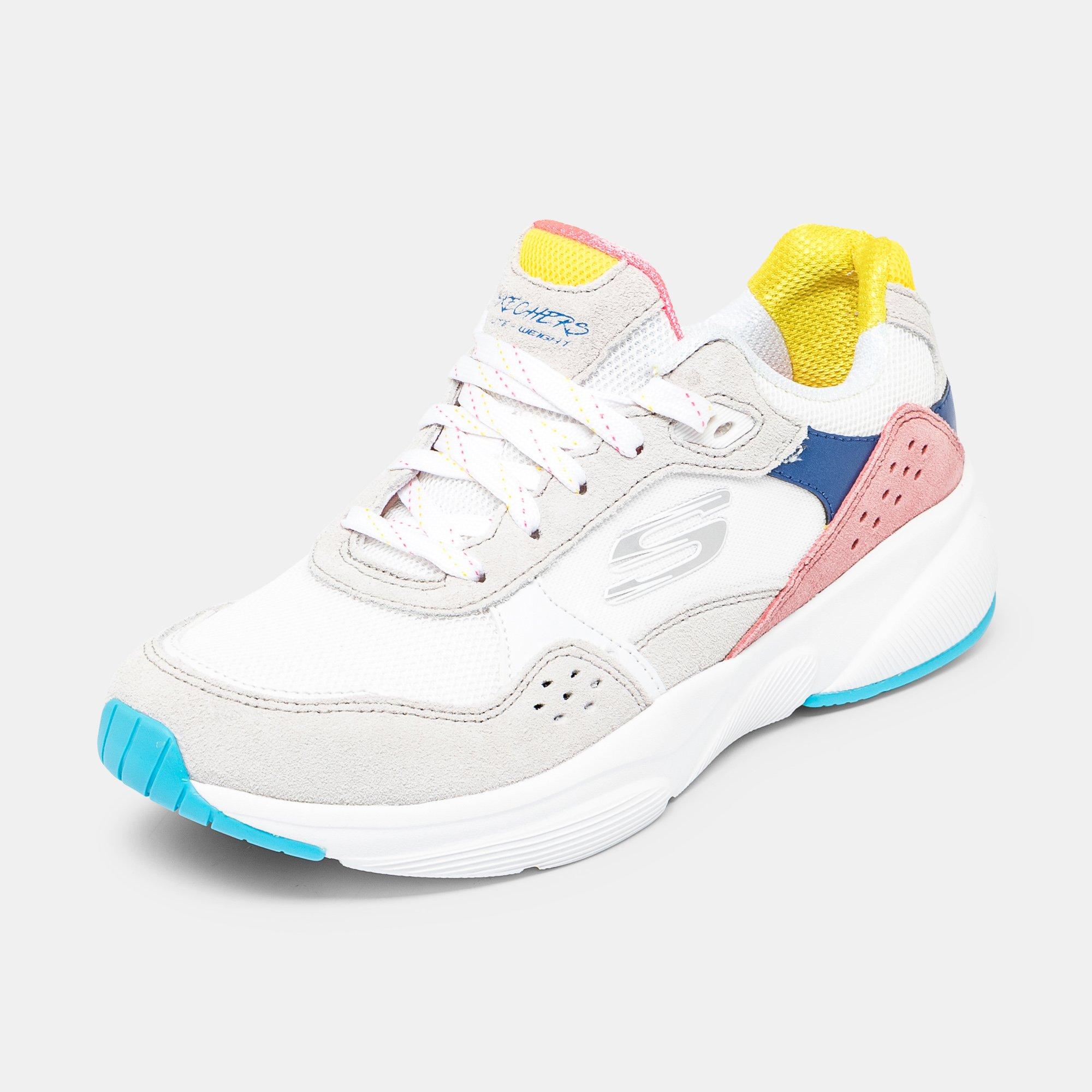 Sneaker firmate Skechers in morbida pelle e tessuto a rete con soletta in memory foam.