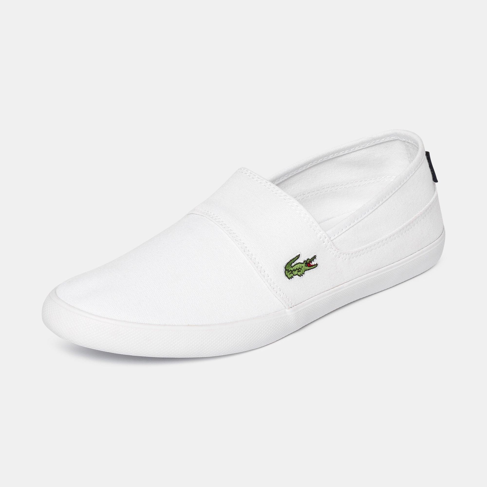 L'intramontabile slipper modello Marice realizzata in morbida tela con dettagli ricamati. Una striscia di plastica testurizzata e la suola vulcanizzata con il logo laterale del coccodrillo verde completano lo stile.