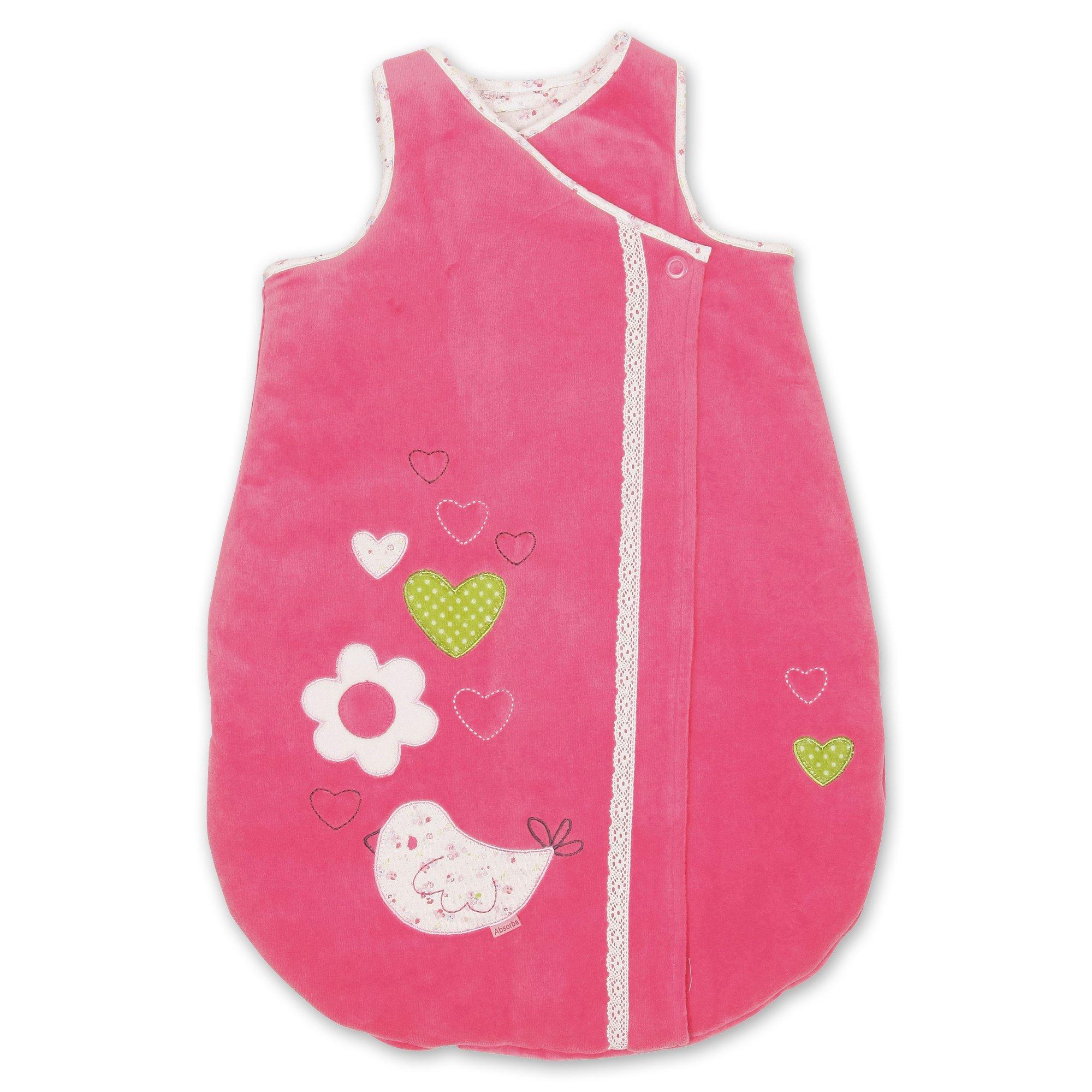 Un sacco a pelo carino senza maniche per i bambini che è decorato con motivi di animali e gli ornamenti. È realizzato in materiale morbido per i bambini da lavare successivamente. Cerniera pratica è sul lato longitudinalmente, è protetto da un bottone sopra. Così si fornisce una immersione caldo ai sogni.
