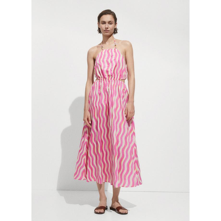 MANGOIbiza Abito Midi Halterneck a Righe Ondulate