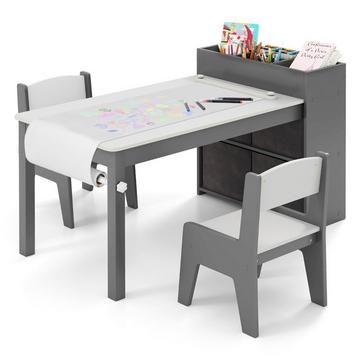 NorthixSet da disegno con tavolo e sedie per bambini. Tavolo da disegno con 2 sedie, rotolo di carta e portarotolo. Grigio.