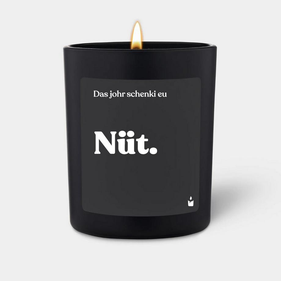 CandleHandDuftkerze Woody Das johr schenki eu Nüt.
