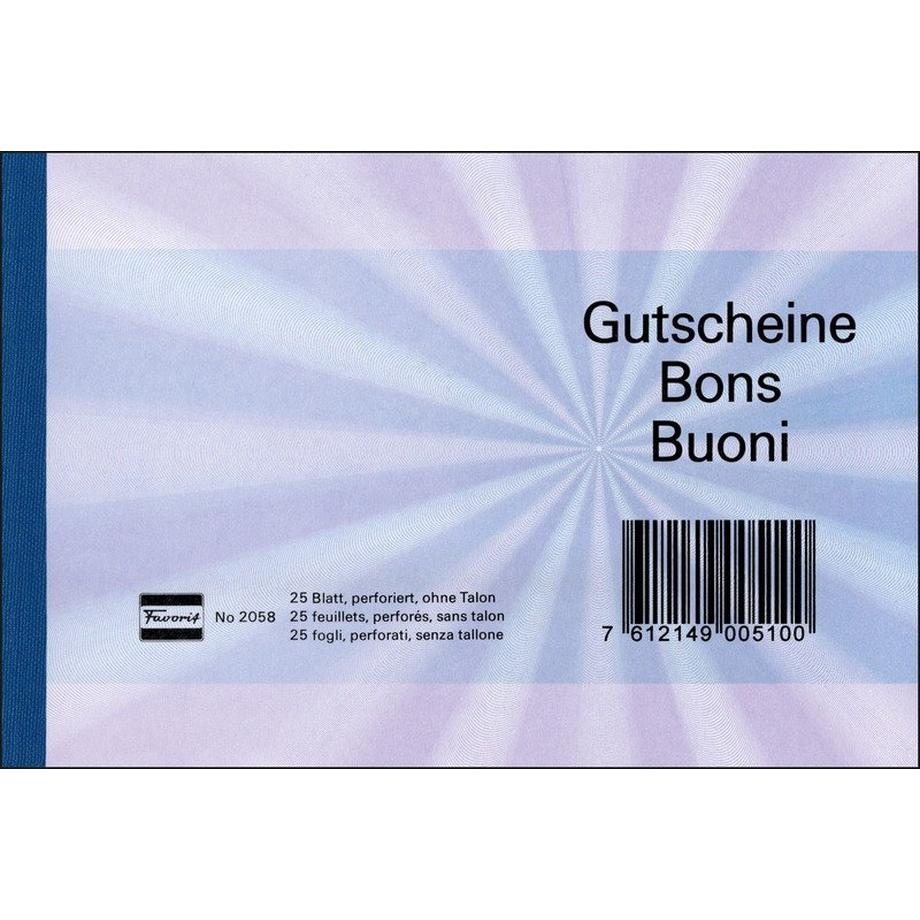 FavoritFAVORIT Gutscheine D/F/I A6 2058 BLAU blau 25 Blatt