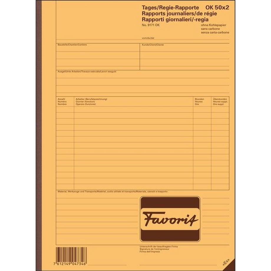 FavoritFAVORIT Wochen-Rapporte D/F/I A4 9301 OK Durchschreibepapier 50x2 Blatt