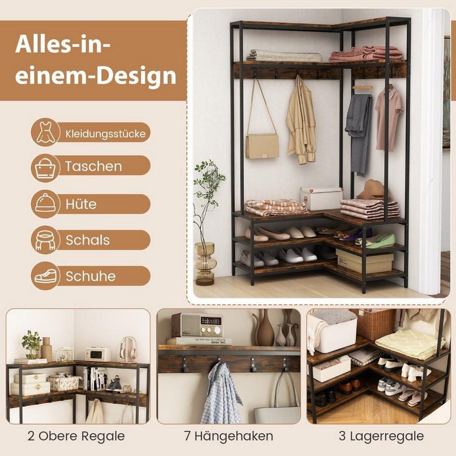NorthixAppendiabiti angolare con panca Appendiabiti a L con ripiani a giorno 90 x 90 x 178 cm Marrone rustico
