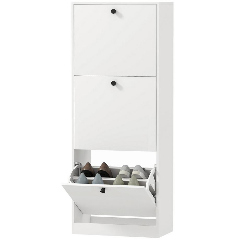 NorthioScarpiera con 3 ribalte, scarpiera con divisorio regolabile, cassettiera per scarpe, ribaltabile stretto per 12 paia di scarpe 47 x 26 x 120 cm, bianco |