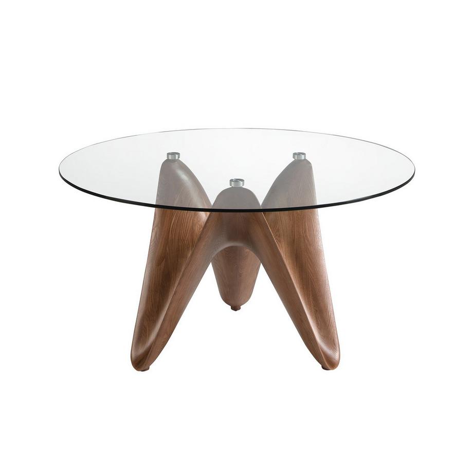 ANGEL CERDATavolo da pranzo rotonda vetro temperato e noce