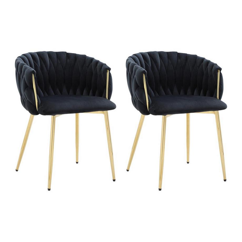 Vente-uniqueSedia con braccioli in Velluto e Metallo Dorato Nero - Lotto di 2 - ELEGANO
