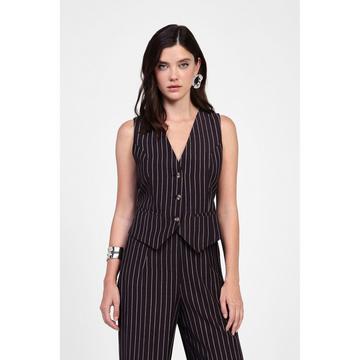 Ulla PopkenGilet smanicato a righe doppiopetto con collo a revers