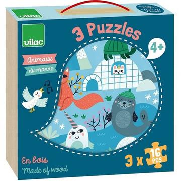 VilacPuzzle Set Tiere der Welt 3x16 Stk., Michelle Carlslund, Vilac