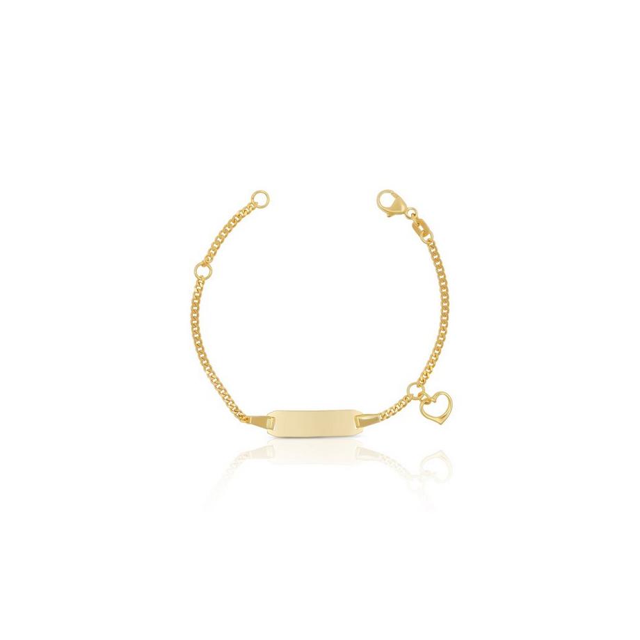 MUAU SchmuckBébé Bracelet Panzer Gelbgold 750, 14cm Herzanhänger Gravurplatte 2.1cm