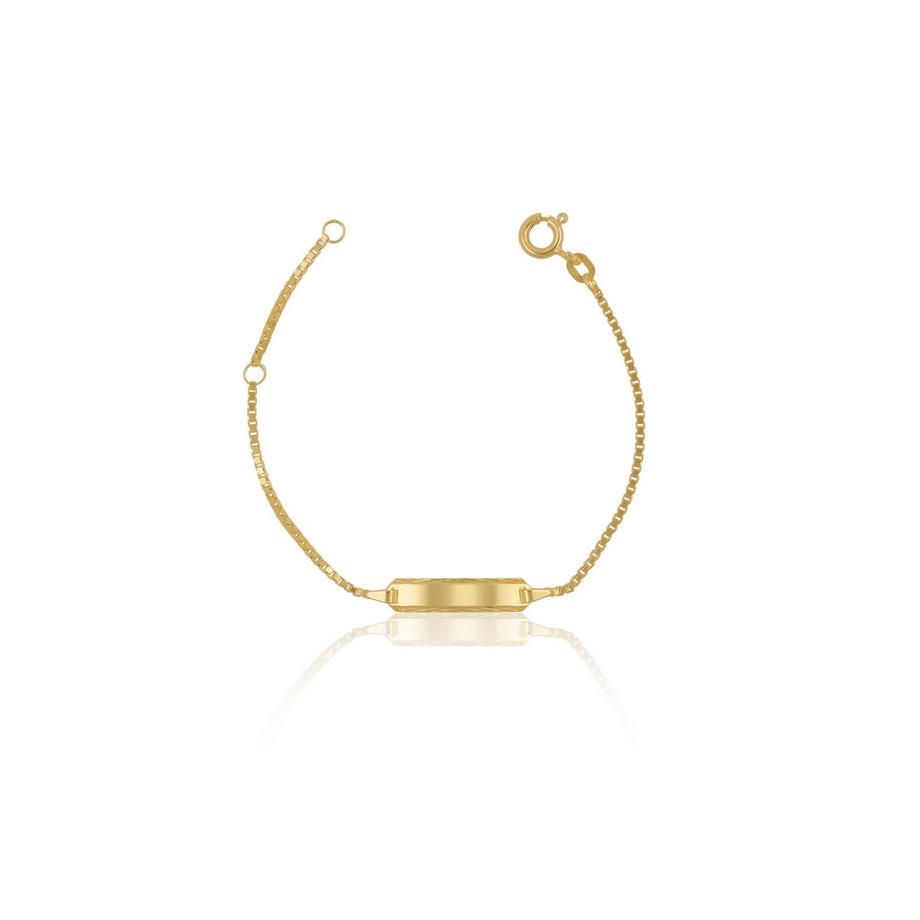 MUAU SchmuckID-Bracelet Venezianer Gelbgold 585, Schild diamantiert 1.1mm, 14cm