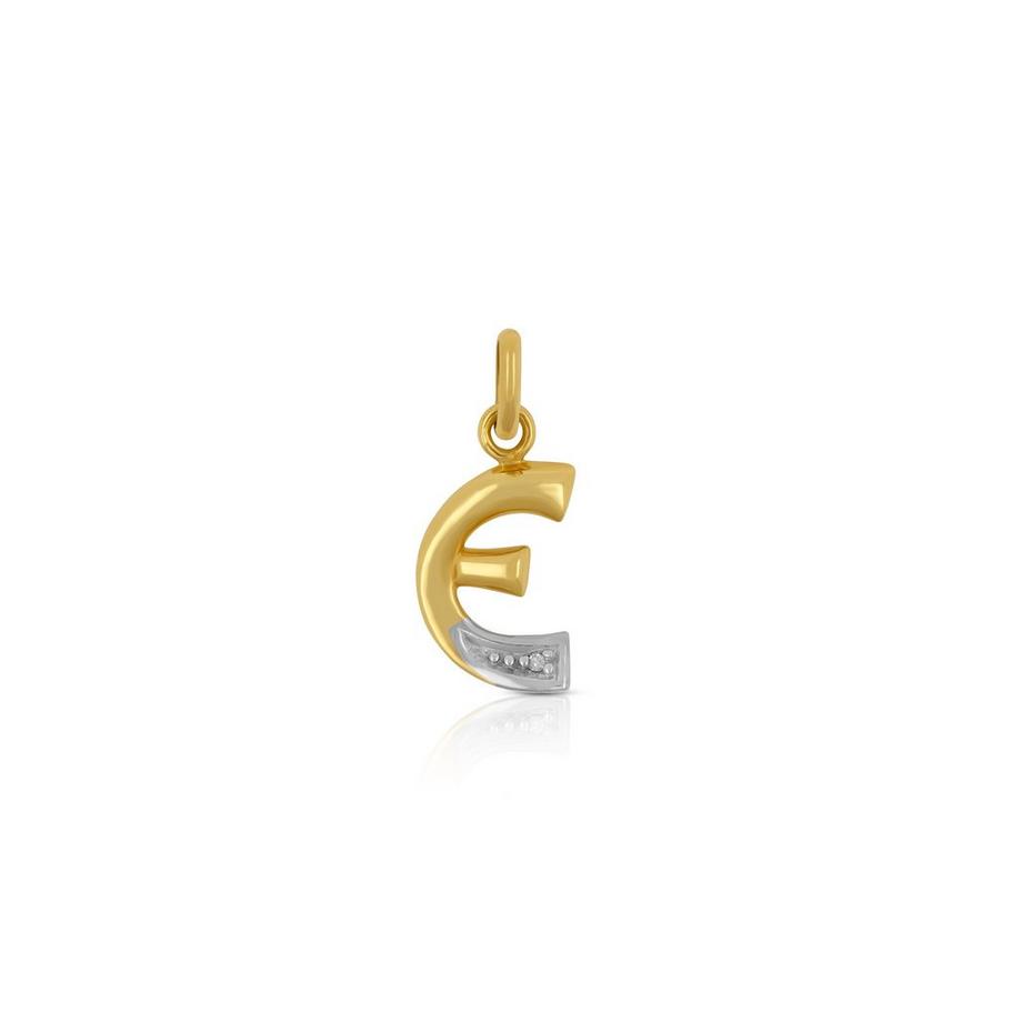 MUAU SchmuckAnhänger Buchstabe E Bicolor Gelb-/Weissgold 750 Diamant 0.01.00ct. 21x12mm