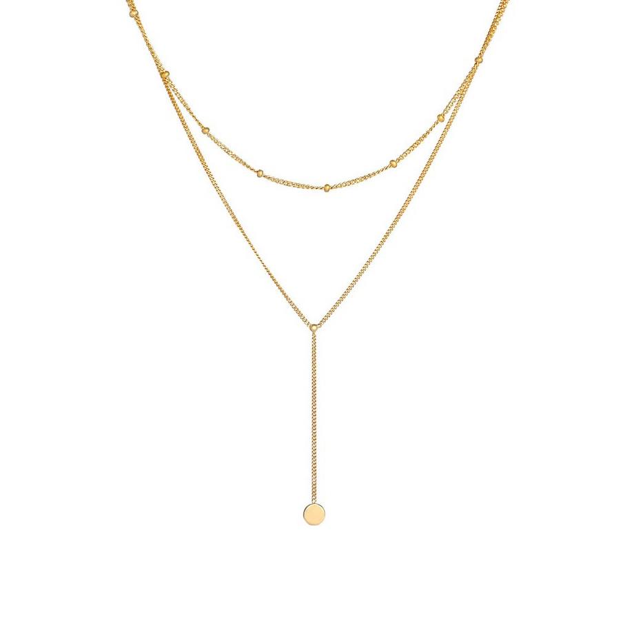 ElliHalskette Layer Y-Kette Kugelkette Plättchen