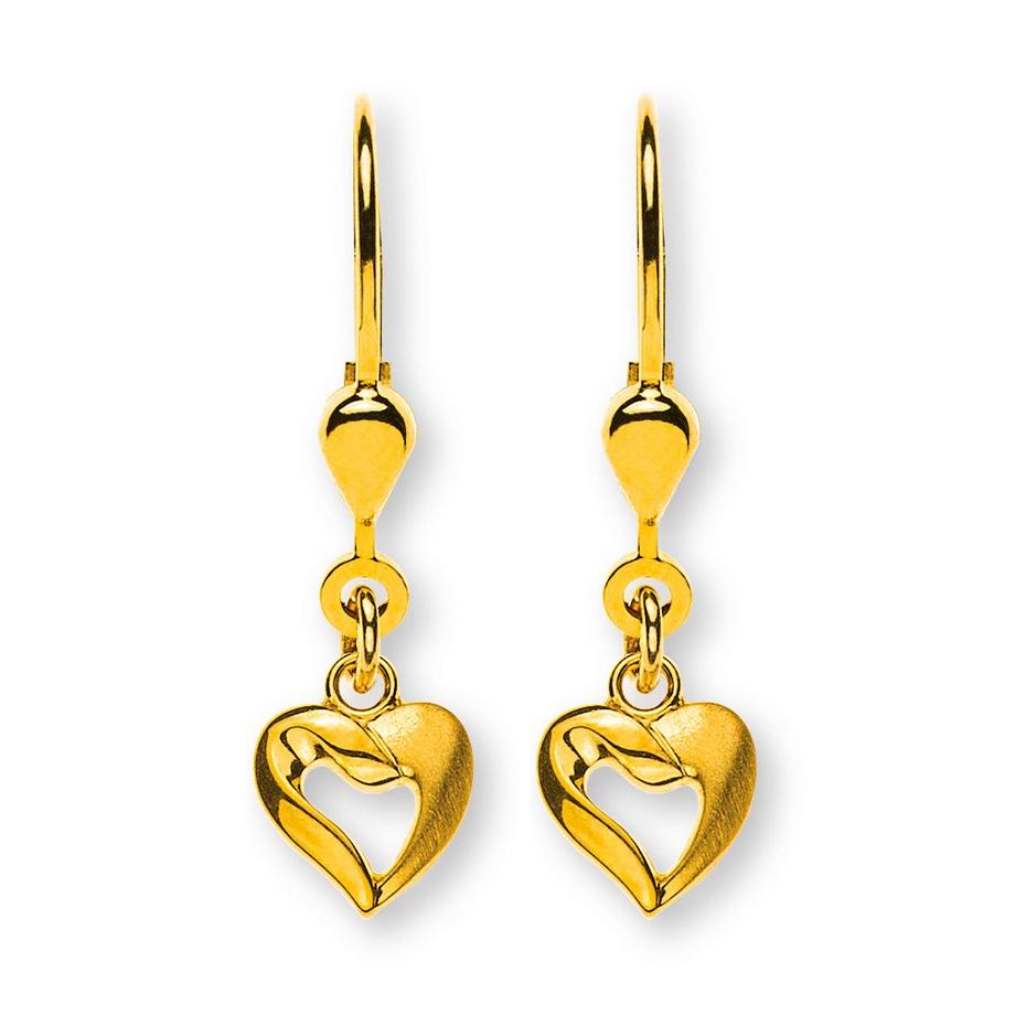 MUAU SchmuckOhrhänger Herz Gelbgold 750 Brisur 24mm