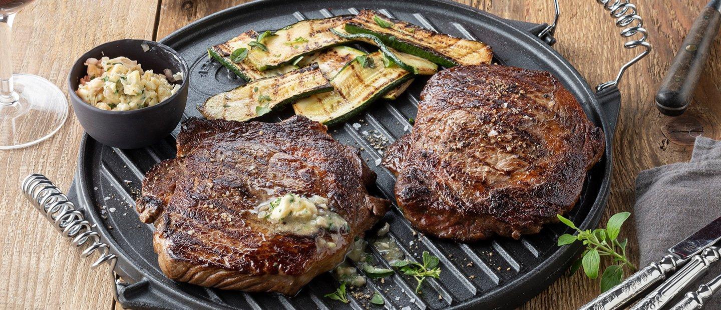La rib eye steak americana è una delle migliori bistecche di sempre. È anche conosciuta come costata reale di manzo. Dato che proviene da un muscolo che non viene usato molto, è estremamente tenera. Ha anche una fantastica marezzatura che la mantiene succosa quando si arrostisce e si griglia, donandole il suo gusto incomparabile. Aggiungete un tocco da cowboy alla rib eye steak con il burro al whisky.